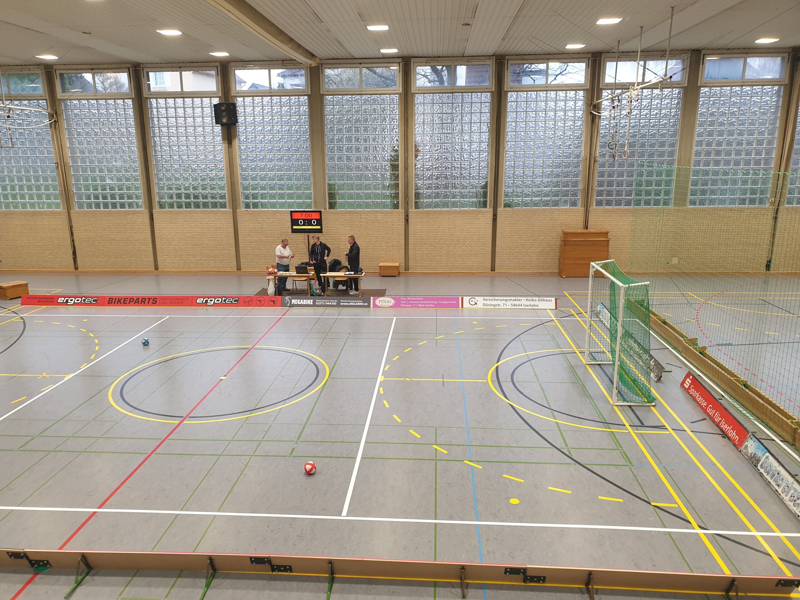 • Tormaße: 3 Meter breit × 2 Meter hoch (Handballtore)